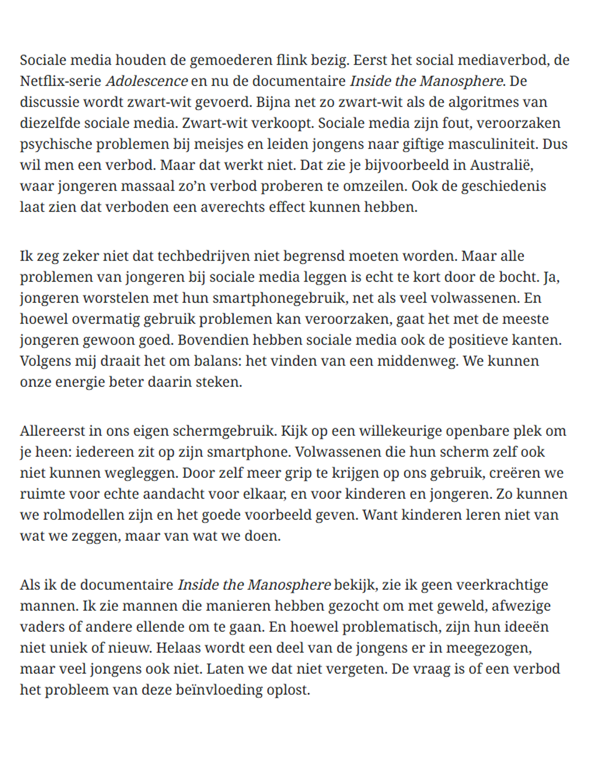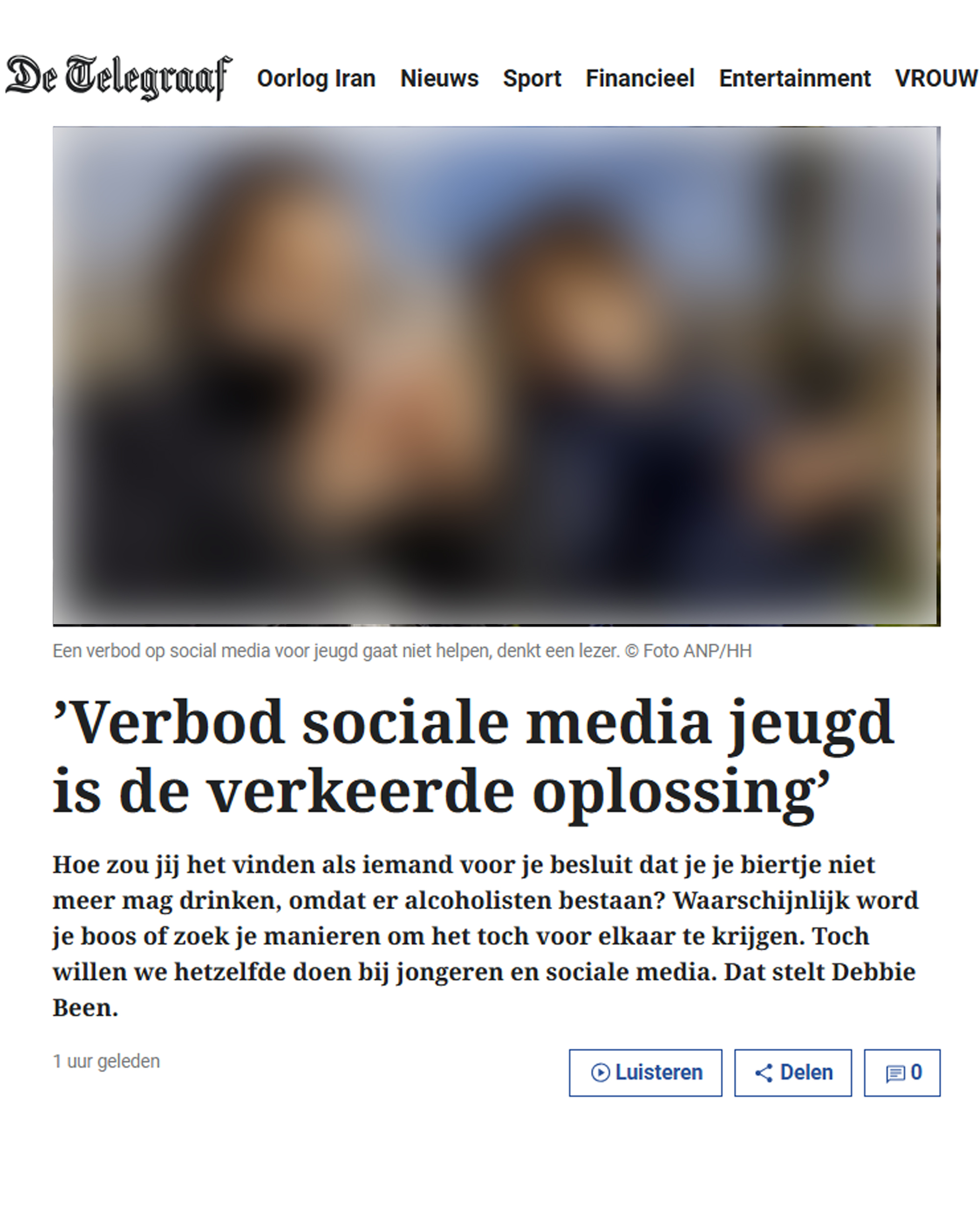 Opiniestuk: 'Verbod sociale media jeugd is de verkeerde oplossing'